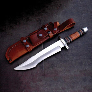 Handmade D2 Steel Hunting Bowie Knife Leather Handle With Leather Sheath