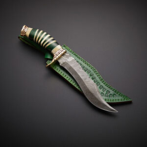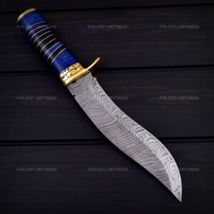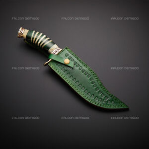 Hunting Bowie Knife Damascus Steel Blade Resin Handle With Leather Sheath.
